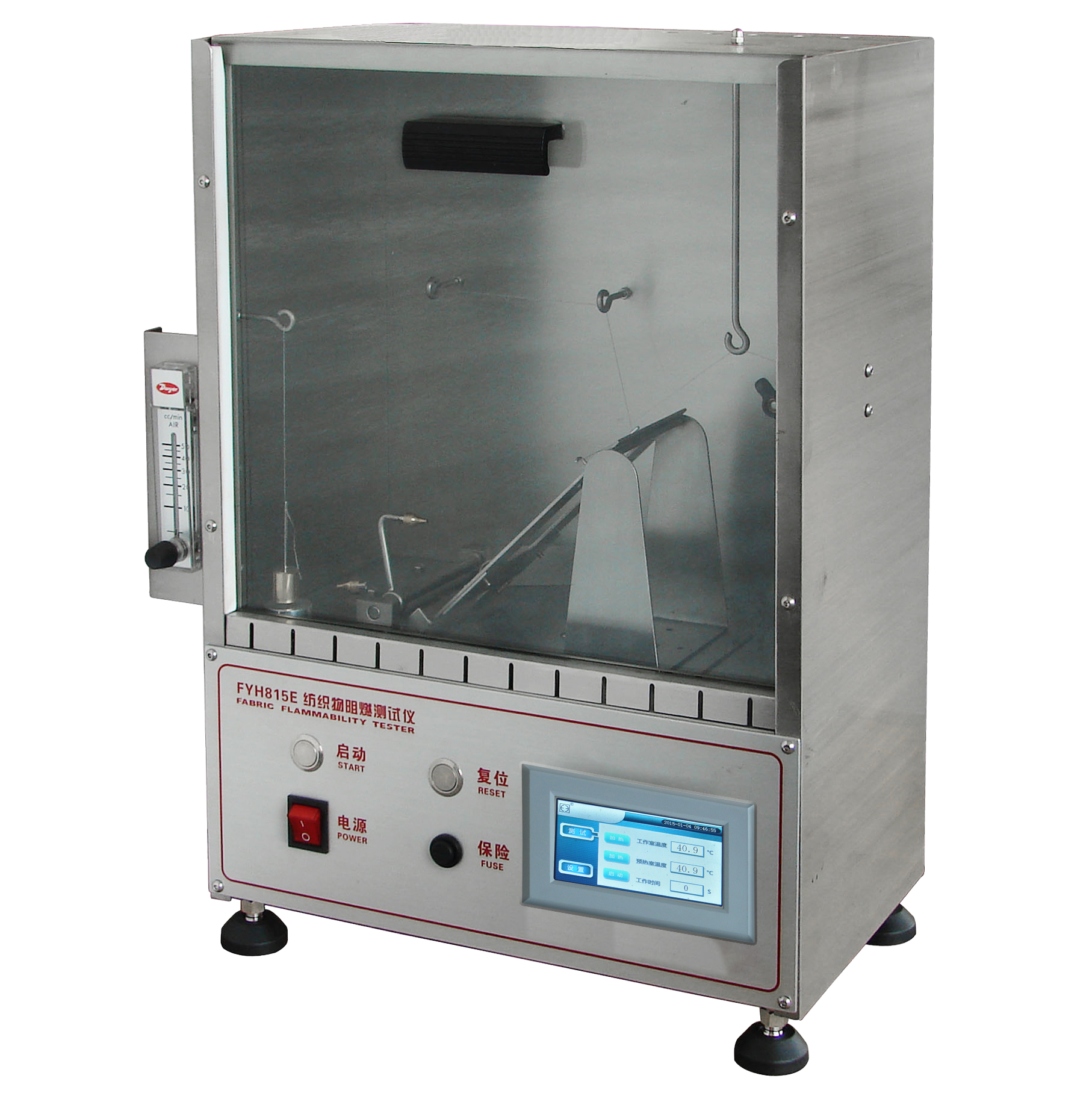 309 FYH815A垂直燃燒測試儀(手動) CFR 1615/1616 兒童睡衣; CA TB117 美國軟體家具面料及填充物阻燃標準; NFPA 701 1989版 小尺寸法。